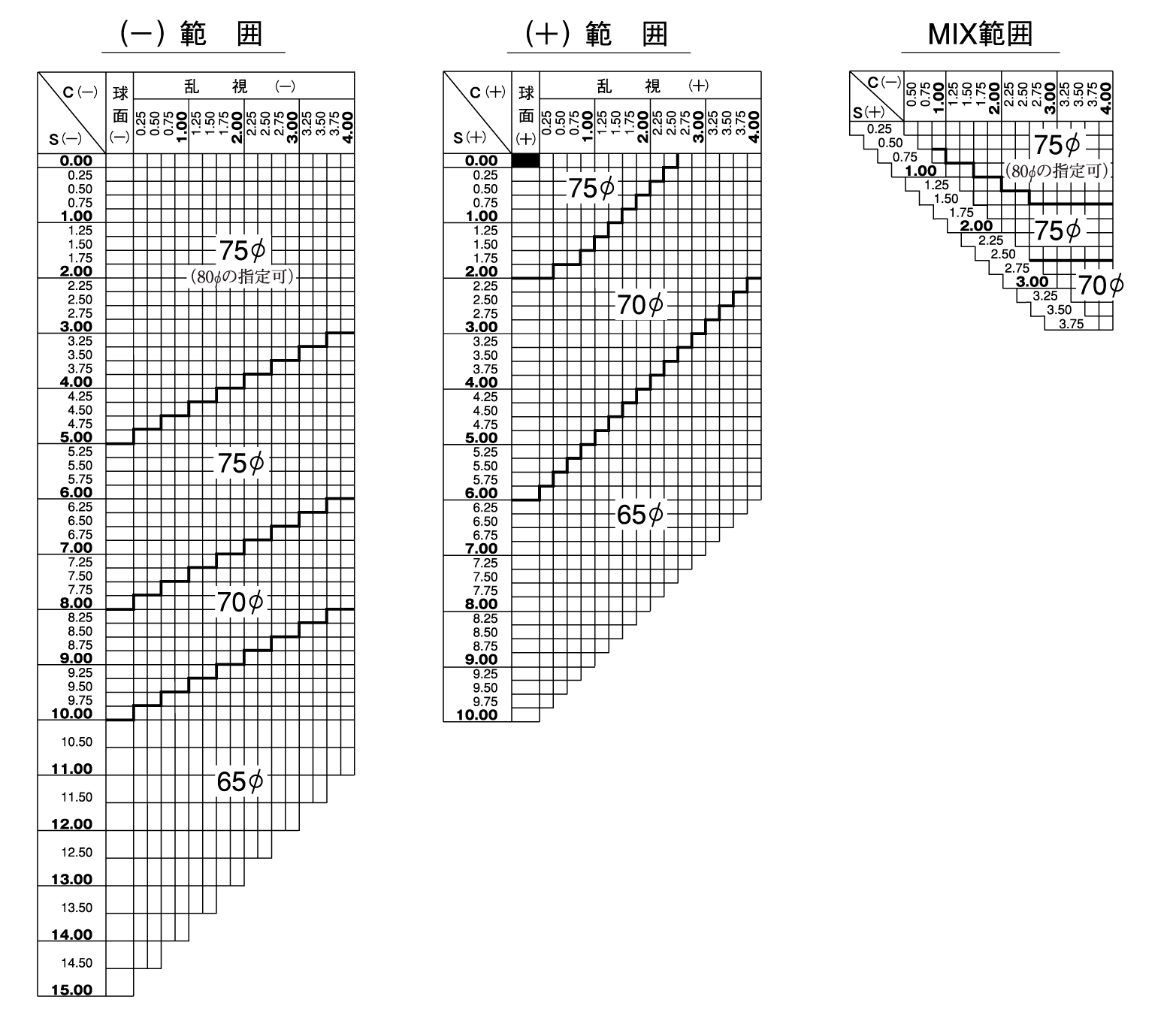 1.67両面非球面レンズは、SPH球面度数+4.00~+2.00 -1.00~-6.50までの方にお勧めしております。