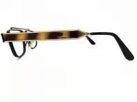 B独創的なスクエアツーブリッジ、張り合わせられた鼈甲柄の生地が洒脱です。